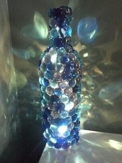 4. Work in small sections of a time. Seems to help to let the bottle rest on its side rather than upright as you work. You may wish to make a pattern with your marble colors--but randomly placing them is just as pretty and of course, faster.